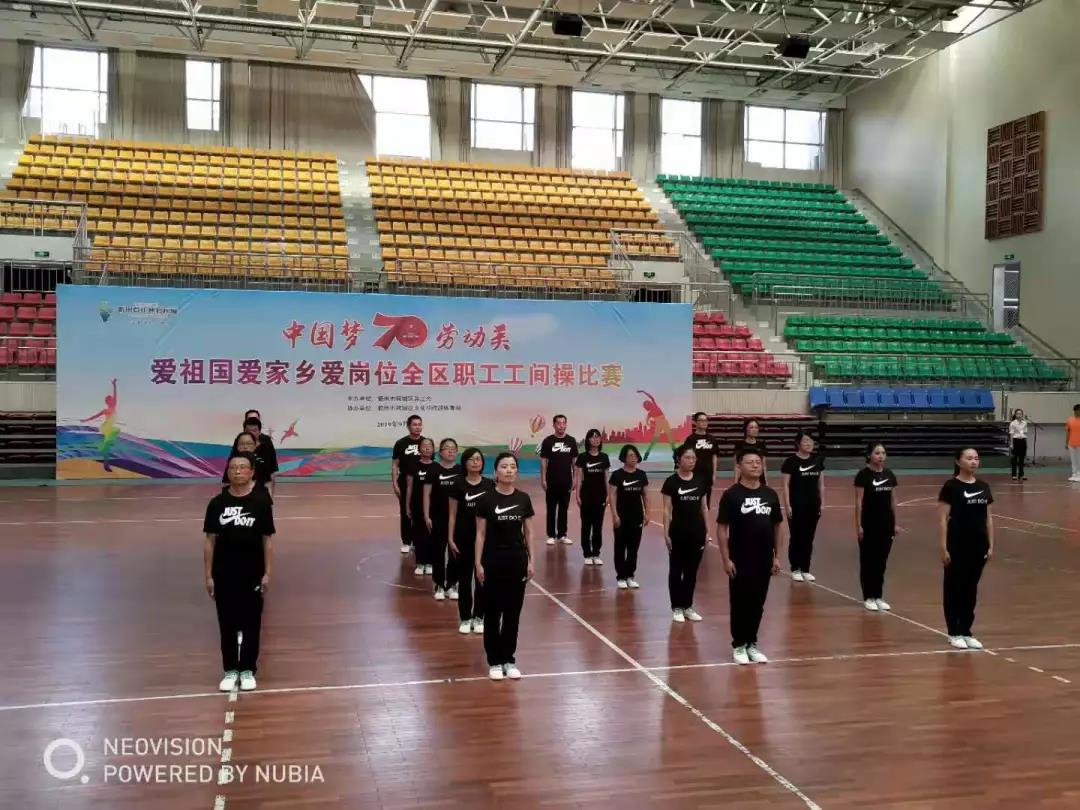 9月28日上午,为庆祝中华人民共和国70周年,“中国梦•劳动美” 爱祖国爱家乡爱岗位全区职工工间操比赛在衢州职业技术学院举行,来自全区企事业单位17支队伍,共400余人参赛。此次活动由柯城区总工会主办、区文化和旅游体育局协办。区人大常委会党组成员、副主任李青,区总工会党组书记、常务副主席熊清益,区文化和旅游体育局党组书记、局长姜建玲等出席开幕式。