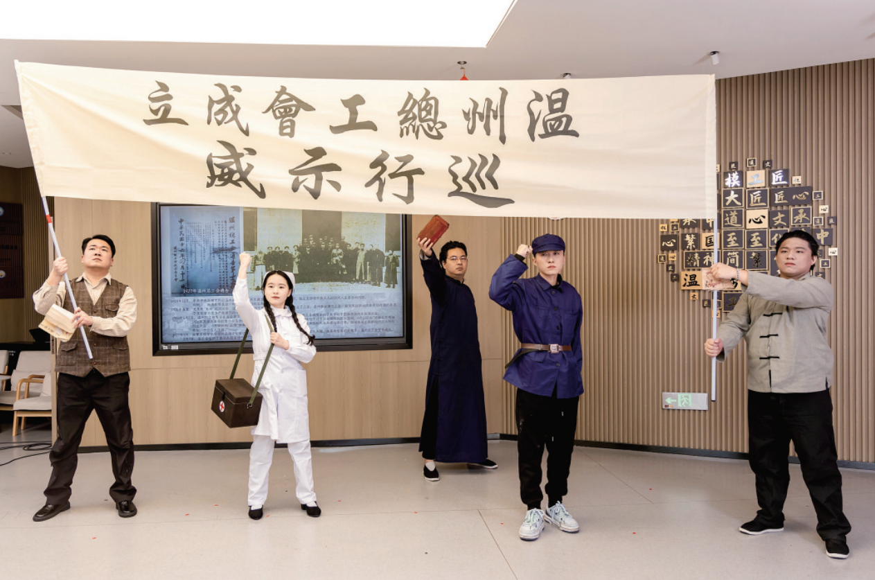 日前,在温州老城的历史街巷与温州劳模工匠馆内,一场打破围墙的特殊“思政课”——温州市总工会“中国工人大思政课”系列活动之“寻迹瓯越红·信仰之光”举行,通过“沉浸式体验+互动式分享”的创新模式,让近百名一线职工、劳模工匠代表在“寻迹”中感悟初心,在“对话”中汲取力量,生动展示新时代职工思想政治引领的“温州探索”。
